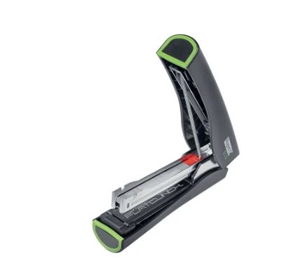 Grapadora de pie ecológica para mantener sus documentos organizados y al mismo tiempo ayudar a proteger el medio ambiente. La grapadora de escritorio está fabricada con un 78 % de plástico reciclado posconsumo y tiene envases de cartón 100 % reciclado, sin plástico, con impresión respetuosa con el medio ambiente a base de soja.