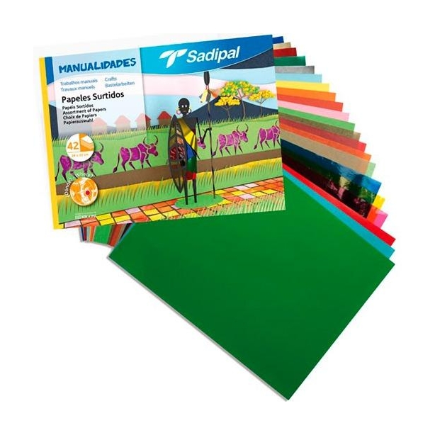 SADIPAL PAPELES SURTIDOS PARA MANUALIDADES 32X24CM PACK 42 HOJAS COLORES