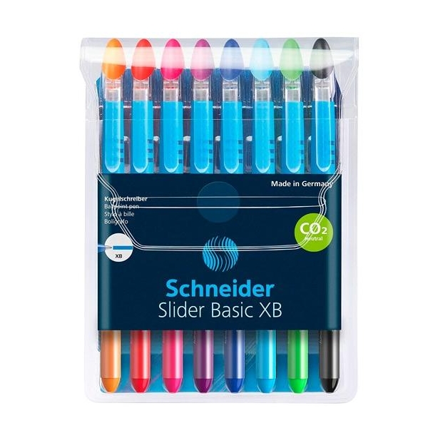 SCHNEIDER BOLÍGRAFO SLIDER BASIC F +2 GRATIS ESTUCHE DE 8 C/SURTIDOS