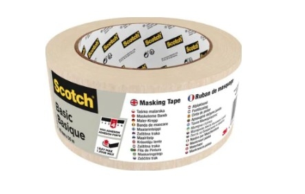 La cinta de enmascarar básica Scotch® es una cinta de enmascarar beige para uso en superficies que no se dañen, sin dejar residuos si se retira hasta 1 día después de su aplicación.