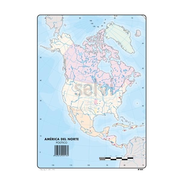 SELVI MAPA MUDO POLÍTICO DE AMERICA DEL NORTE A4 -50U-