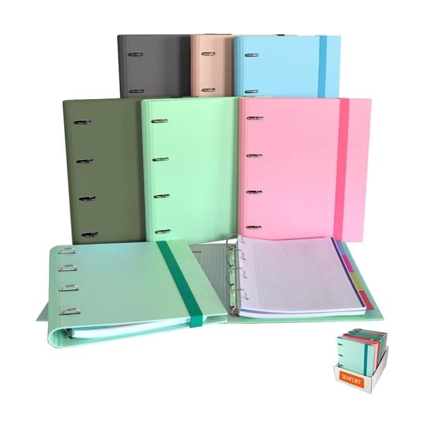 SENFORT CARPETA RINGBOOK 4 ANILLAS 30MM REC/120H A4 C/SEPARADORES LIGHT SURTIDOS