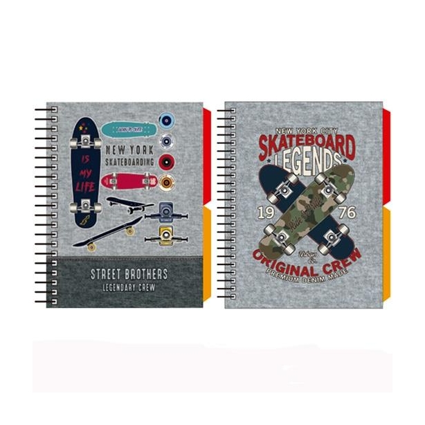 SENFORT CUADERNO ESPIRAL A6 120H T/DURA 2 SEPARADORES FORRADO SKATEBOARD SURTIDO