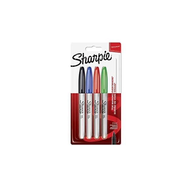 SHARPIE MARCADOR PERMANENTE FINE 0,9MM SURTIDOS (NEGRO,AZUL, ROJO, VERDE) PUNTA REDONDA BLISTER -4U-