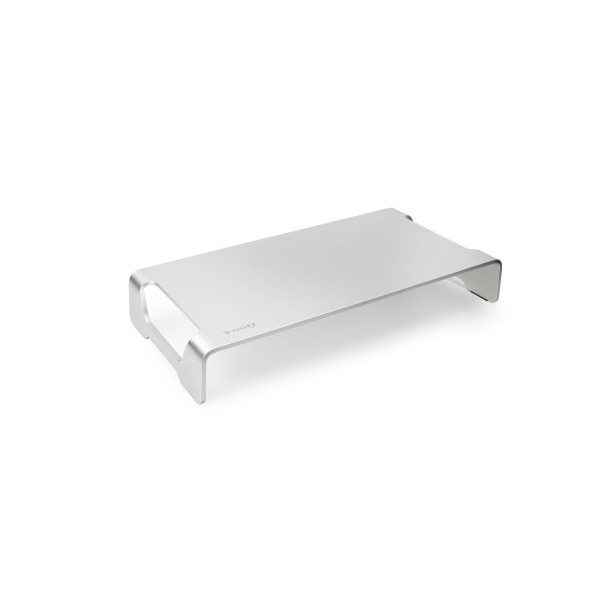 Soporte elevador para monitor/portátil de aluminio - Soporte elegante de gran robustez que se adapta perfectamente al estilo minimalista de iMac y Macbook - Incorpora almohadillas de silicona para dar mayor estabilidad - Válido para portátiles de hasta 13” - Peso máximo soportado 20 kg - Color: Plata - Medidas del producto: 400x210x63 mm - Peso neto: 1,20 kg. Peso bruto: 1,68 kg - Medidas del embalaje: 420x235x72 mm