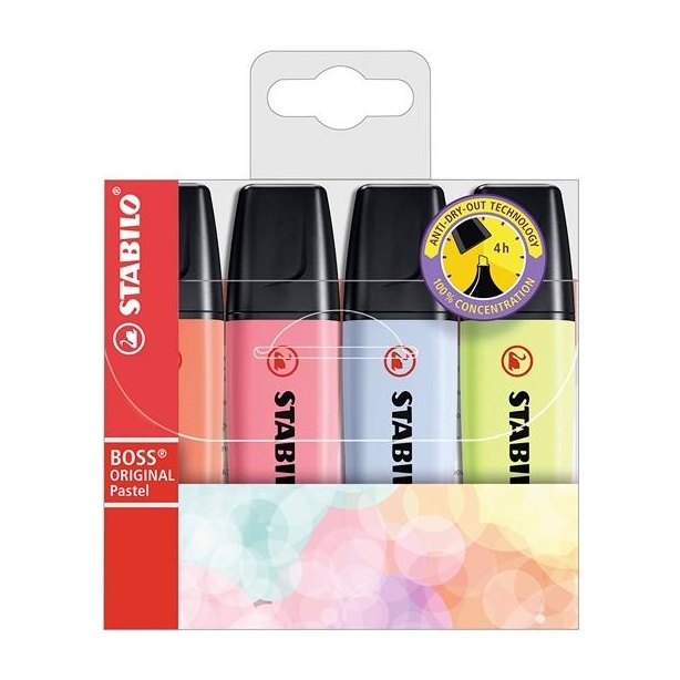 STABILO BOSS MARCADOR FLUORESCENTE NUEVOS COLORES PASTEL ESTUCHE -4U-