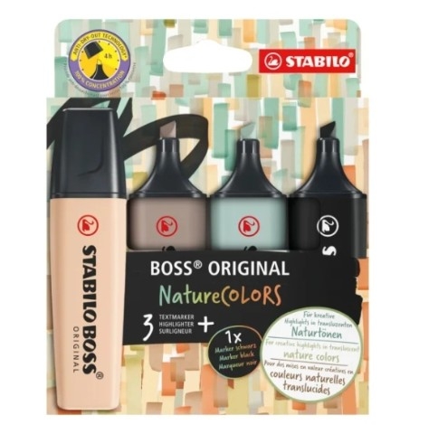 STABILO BOSS NATURECOLORS PACK DE 4 MARCADORES - COLORES NEGRO, BEIGE, GRIS CALIDO Y VERDE TIERRA