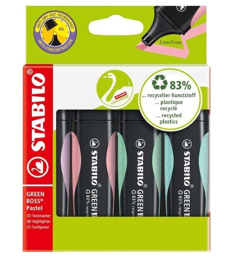 STABILO GREEN BOSS PASTEL PACK DE 4 MARCADORES FLUORESCENTES