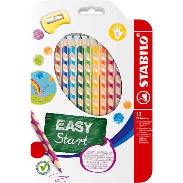 STABILO LAPICES de COLORESEASY COLORS PARA ZURDO ESTUCHE de 12 CON AFILALAPIZ