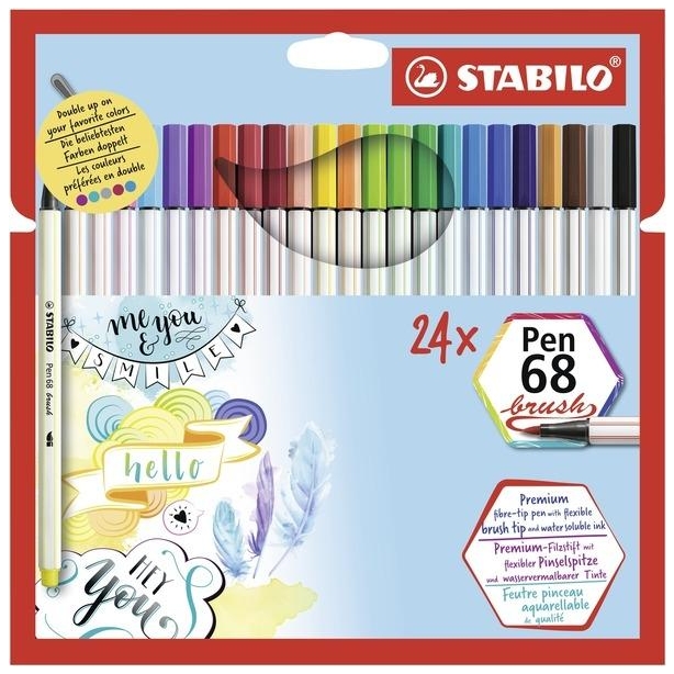 STABILO ROTULADORES PEN 68 BRUSH ESTUCHE DE CARTON 24 COLORES