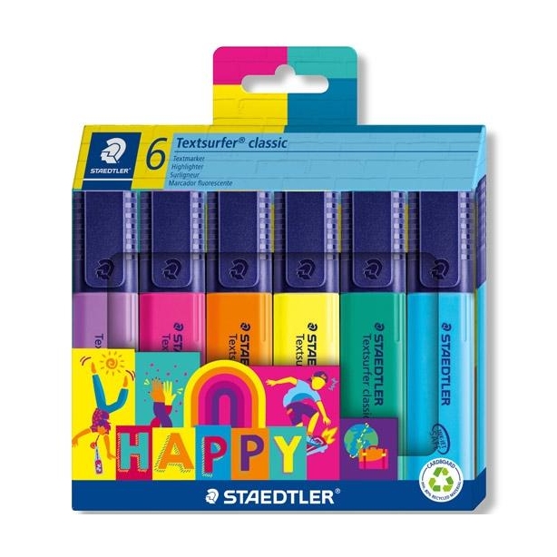 STAEDTLER ESTUCHE 6 MARCADORES FLUORESCENTES TEXTSURFER CLASSIC HAPPY LINE C/SURTIDOS