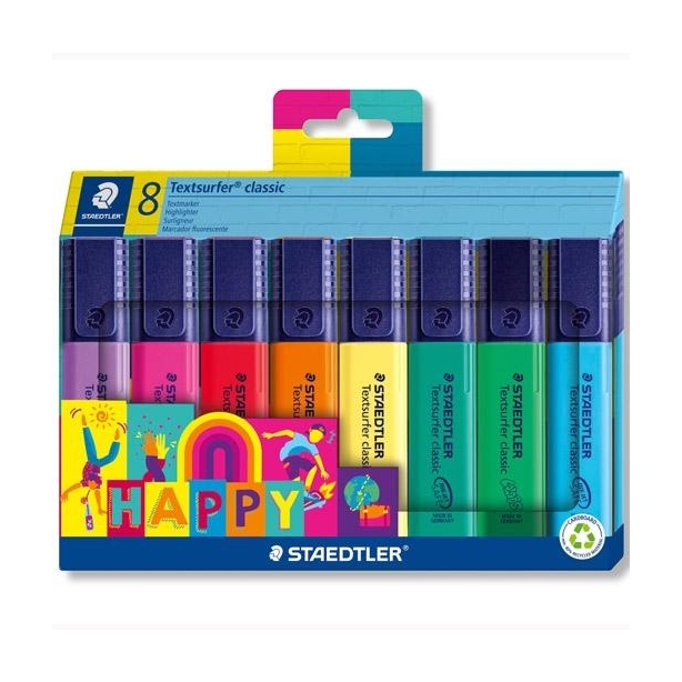 STAEDTLER ESTUCHE 8 MARCADORES FLUORESCENTES TEXTSURFER CLASSIC HAPPY LINE C/SURTIDOS