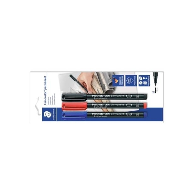 STAEDTLER ROTULADOR PERMANENTE LUMOCOLOR 317-S BLISTER 3 UD AZUL /NEGRO /ROJO