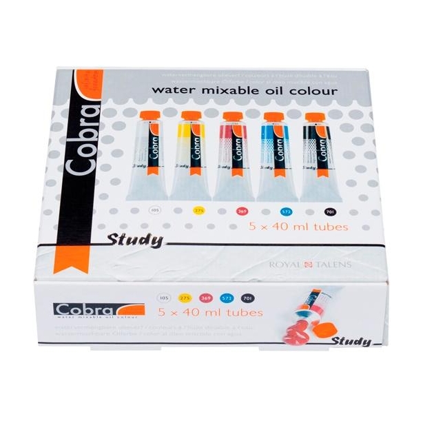 TALENS COBRA STUDY SET ESTUCHE 5 TUBOS DE 40ML COLORES AL ÓLEO PRIMARIOS SURTIDOS