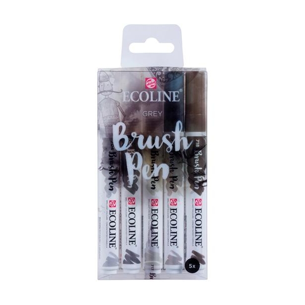 TALENS ECOLINE ROTULADORES BRUSH PEN PUNTA PINCEL ESTUCHE DE 5 GRIS