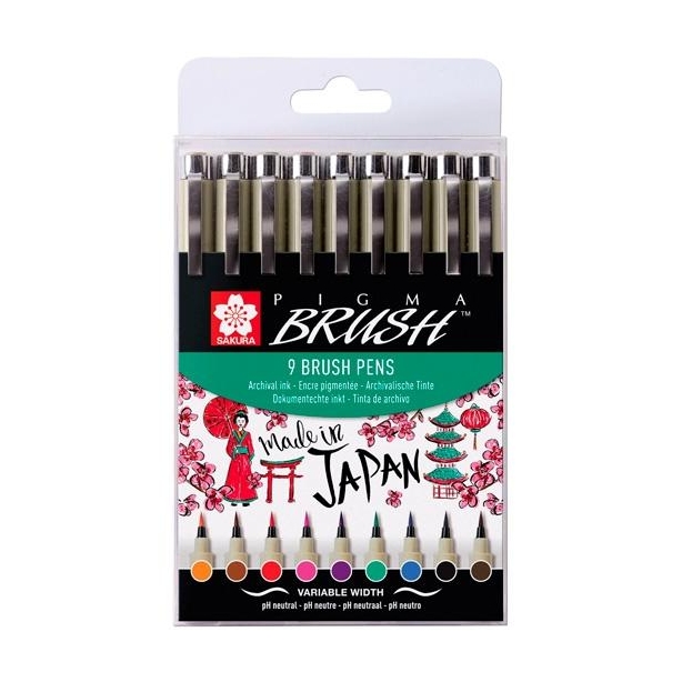 TALENS SAKURA ROTULADORES PUNTA PINCEL PIGMA BRUSH PENS ESTUCHE DE 9 C/SURTIDOS