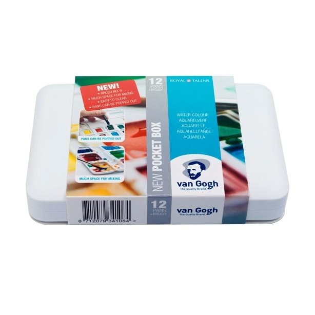 TALENS VAN GOGH SET ESTUCHE DE PINCEL + PALETA + 12 ACUARELAS COLORES BÁSICOS SURTIDOS