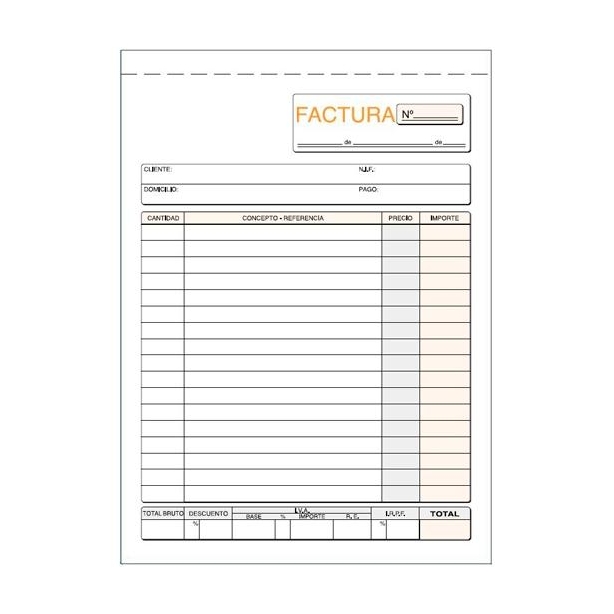 TALONARIO FACTURAS CUARTO NATURAL DUPLICADO AUTOCOPIA