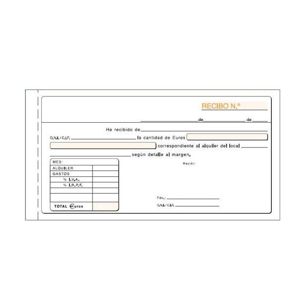 TALONARIO RECIBO ALQUILER IVA TERCIO DE FOLIO DUPLICADO AUTOCOPIA