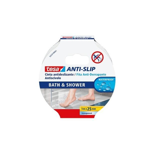 TESA CINTA ANTIDESLIZANTE ADHESIVA BAÑO 25MM X 5M TRANSPARENTE