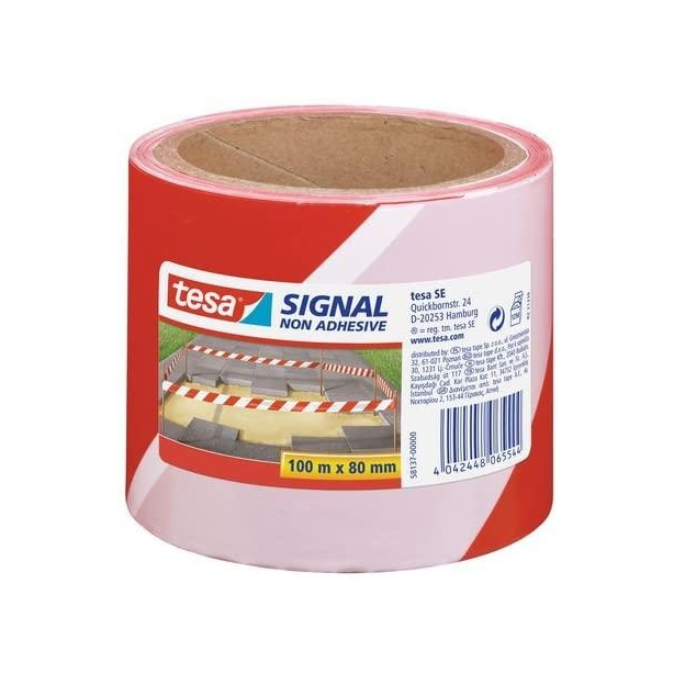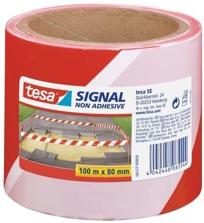 TESA CINTA DE BALIZAMIENTO 100M X 80MM NO ADHESIVA ROJO/BLANCO
