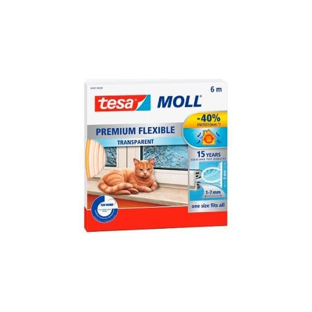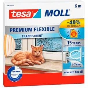 TESA CINTA DE SELLADO TESAMOLL PREMIUM FLEXIBLE 6MX9MMX7MM SILICONA TRANSPARENTE -MANCHETA-