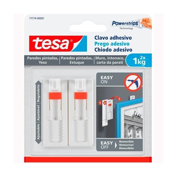 TESA PACK DE 2 CLAVO ADHESIVO AJUSTABLE HASTA 1KG PARA PARED LISA
