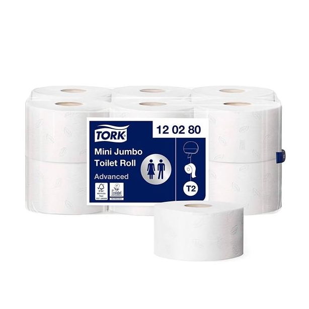 TORK PAPEL HIGIÉNICO MINI JUMBO ADVANCED 2 CAPAS 170M BLANCO PACK -12U-
