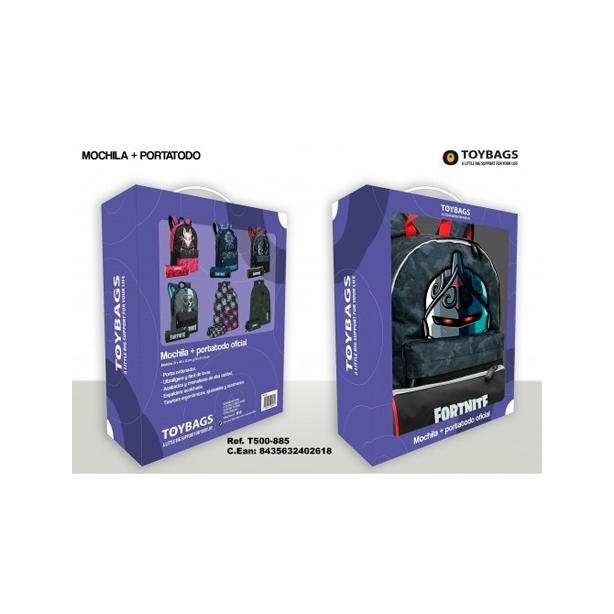 TOYBAGS PACK MOCHILA + PORTATODO FORTNITE BLACK KNIGHT TIPO AMERICANO 2 BOLSILLOS
