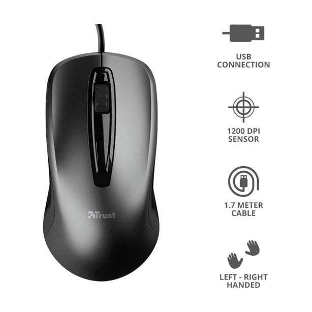 TRUST RATÓN CARVE CON CABLE USB 1200DPI AMBIDIESTRO 3 BOTONES NEGRO