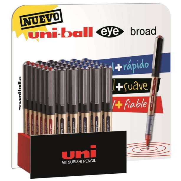 UNIBALL EXPOSITOR ROLLERBALL EYE BROAD UB-150-10/3D 36 UNIDADES ROJO-NEGRO-AZUL -36U-