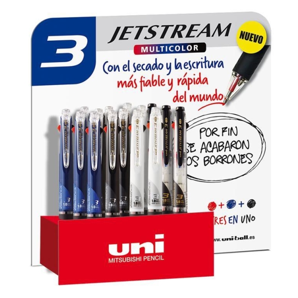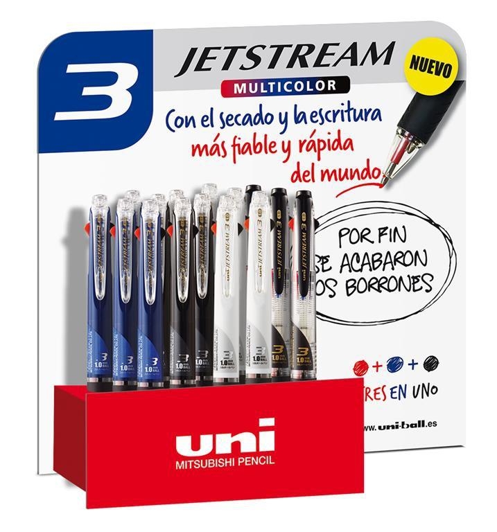 UNIBALL EXPOSITOR ROLLERBALL JETSTREAM SXE3-400 3 COLORES EN UNO Y 4 MODELOS DIFERENTES -15U-