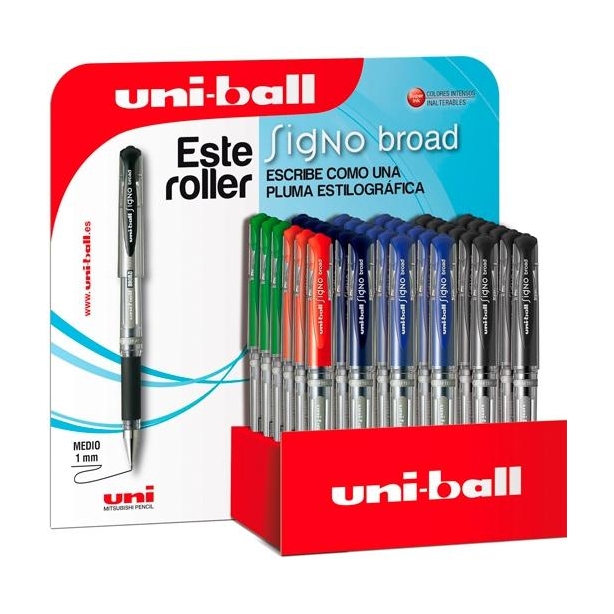 UNIBALL EXPOSITOR ROLLERBALL SIGNO BROAD UM-153/3D ROJO-NEGRO-AZUL-VERDE -36U-