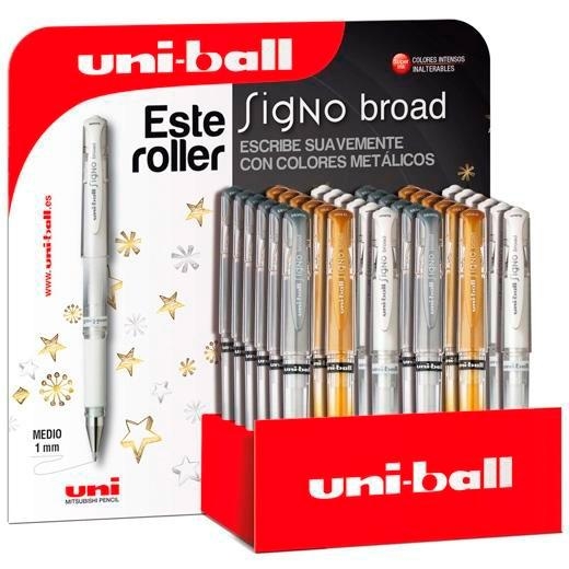 UNIBALL EXPOSITOR ROLLERBALL SIGNO BROAD UM-153 G/S/W 3D PLATA-ORO-BLANCO -36U-