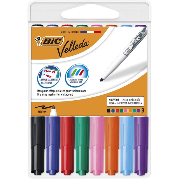VELLEDA MARCADOR 1741 PIZARRA BLANCA PUNTA REDONDA COLORES SURTIDOS (BLISTER DE 8)
