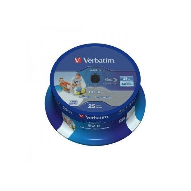 VERBATIM BD-R SL DATALIFE, 25GB, 6X, 25 PACK SPINDLE, WIDE INKJET PRINTABLE (22-118MM)