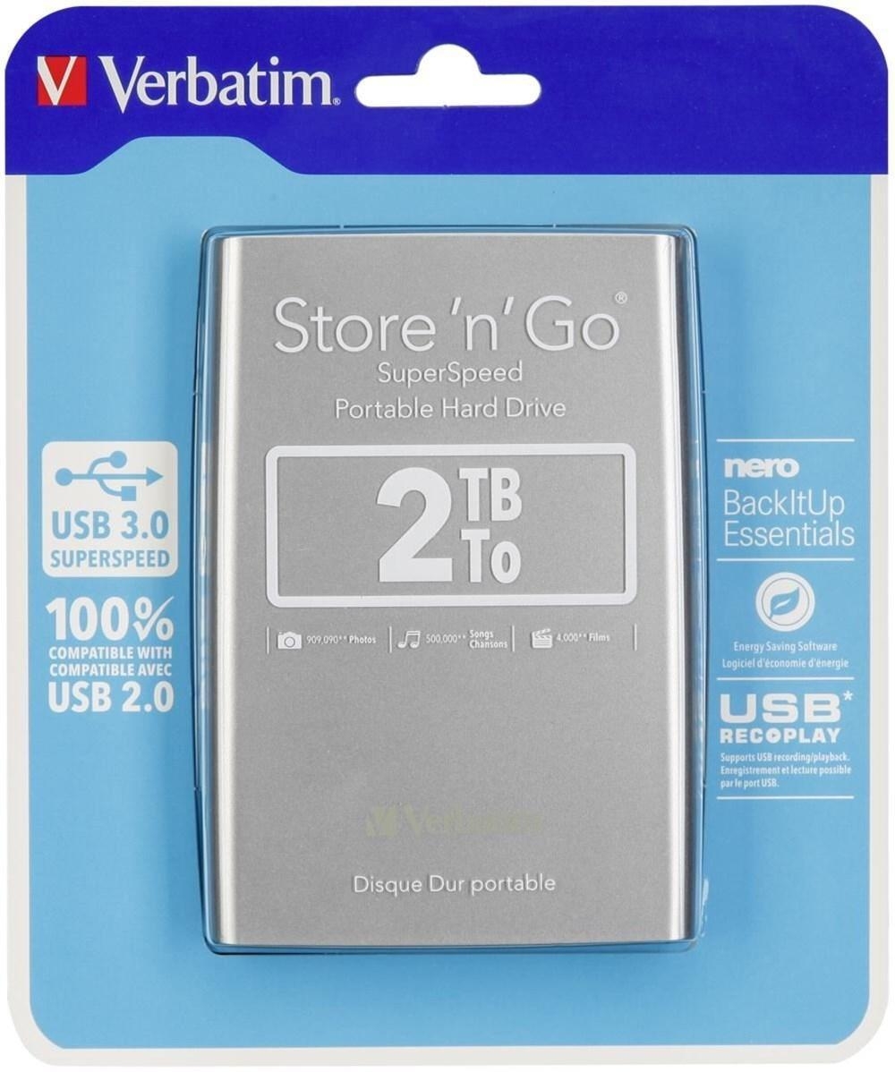 VERBATIM DISCO DURO PORTÁTIL STORE 'N' GO 2TB HDD 2.5" USB 3.0 PLATA
