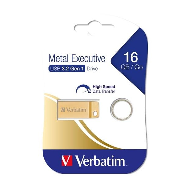VERBATIM PENDRIVE METAL EXECUTIVE 16GB C/RANURA PARA COLGAR Y LLAVERO USB 3.2 GOLD