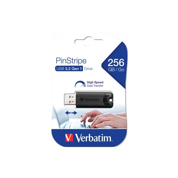 VERBATIM PENDRIVE PINSTRIPE 256GB HI-SPEED RETRÁCTIL USB 2.0 NEGRO