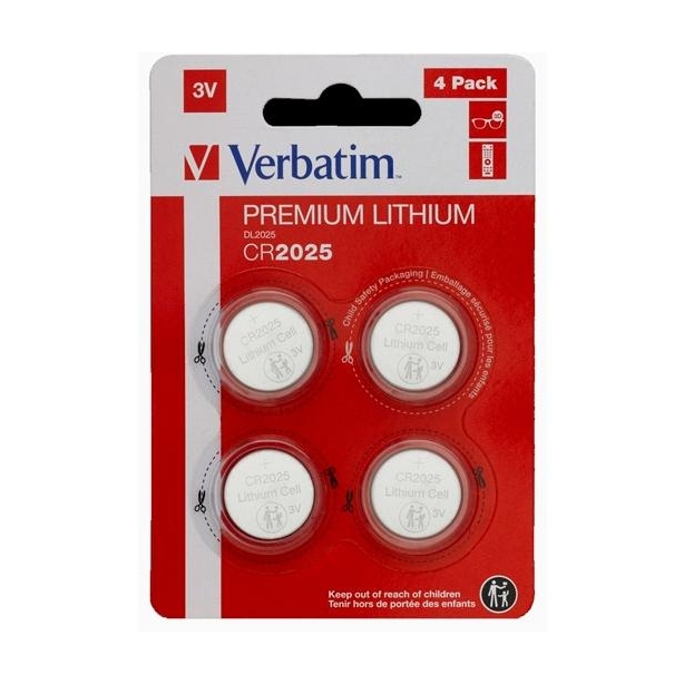VERBATIM PILAS PLANAS DE LITIO 3V - CR2025 (4 PACK)