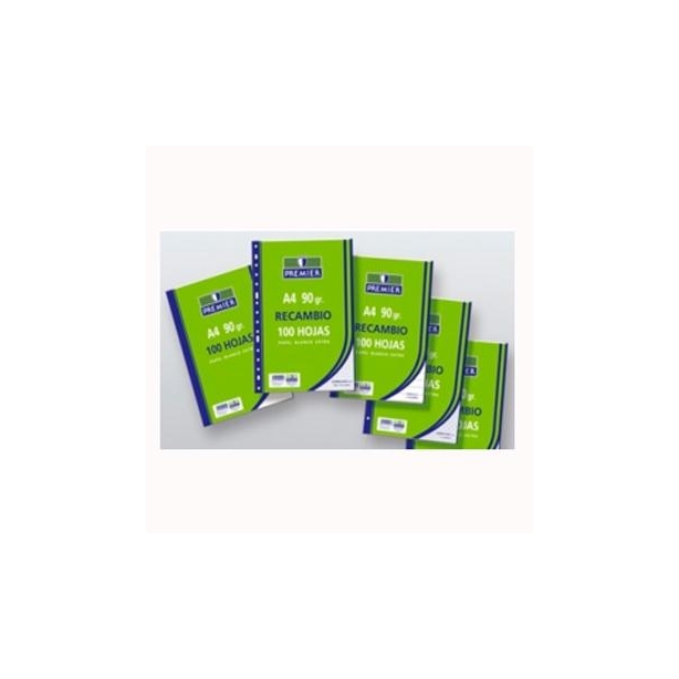 ZORRILLA RECAMBIO 100 HOJAS FOLIO MULTITALADRO 90GR CUADROS 4X4 PAPEL BLANCO