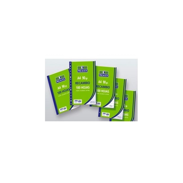 ZORRILLA RECAMBIO PREMIER 100 HOJAS A4 MULTITALADRO 90GR 3X3 PAPEL BLANCO EXTRA